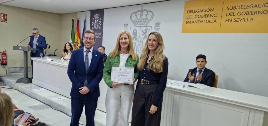 En reconocimiento a la labor desarrollada por el Colegio Infanta Leonor para el fomento de un entorno escolar seguro, el premio ha sido recogido este jueves, 26 de febrero, por la concejal de Presidencia, Administración General, Educación, Juventud, Deporte, Hacienda y Protección Civil, Gema Sánchez-Barriga de la Fuente del Ayuntamiento de Tomares, en representación del alcalde de Tomares, José María Soriano, y la directora del colegio Infanta Leonor, Mª Susana Domínguez González, en la sede de la Subdelegación del Gobierno en Sevilla.