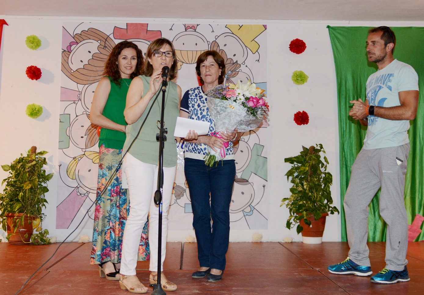 Ante un salón de actos repleto de profesores, alumnos y familiares, el alcalde de Tomares José Luis Sanz, y la concejal de Educación, Mª Carmen Ortiz, entregaron una placa conmemorativa a Victoria López Reyes, “en agradecimiento a todos los años dedicados al colegio Tomás Ybarra, en los que se ha convertido en parte fundamental de la comunidad educativa de Tomares”. También la directora del centro, Lola Urbano, y los profesores le hicieron entrega de varios obsequios de recuerdo como un gran ramo de flores, un reloj y un móvil con whatsapp para que Victoria pueda seguir en contactos con todos.