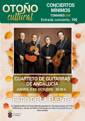 EL ‘CUARTETO DE GUITARRAS DE ANDALUCÍA’ ENTUSIASMARÁ AL PÚBLICO CON SU BELLA MÚSICA EN EL PATIO DE LA FUENTE DEL AYUNTAMIENTO DE TOMARES ESTE JUEVES, 9 DE OCTUBRE