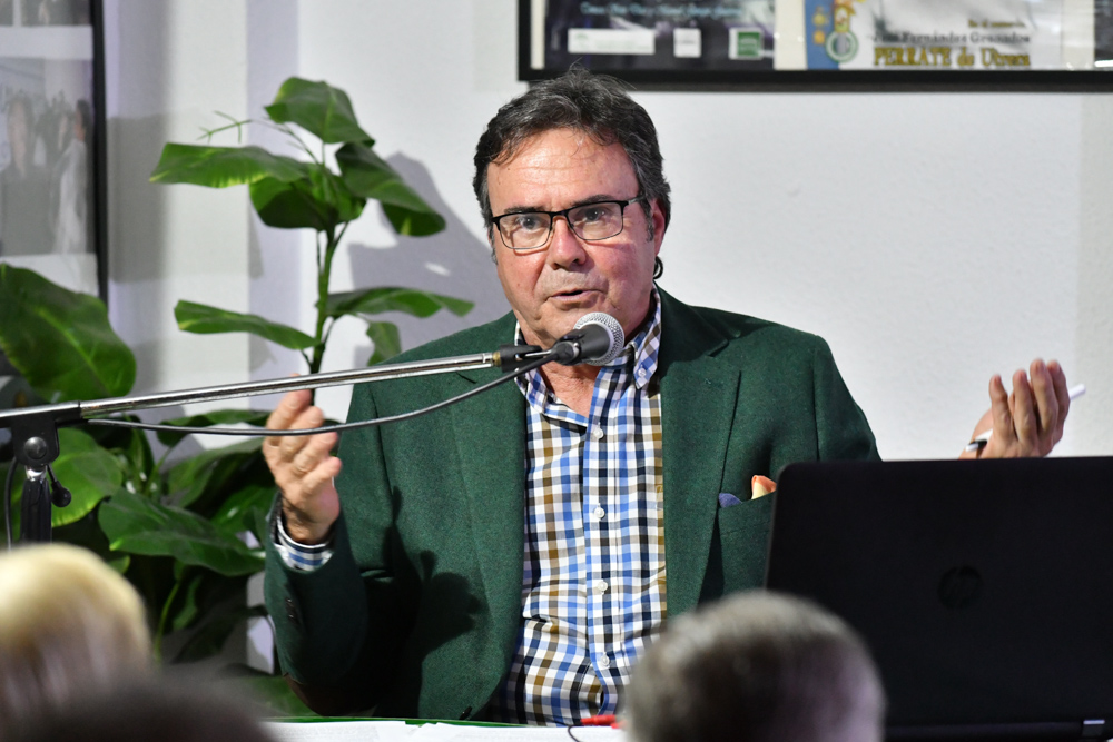 El periodista especializado en flamenco Manolo Curao, conquistó al auditorio con su conferencia “El flamenco y la radio. 30 años de Canal Sur”, en la que repasó la presencia del flamenco en el ente público andaluz a lo largo de tres décadas, ilustrando sus palabras con fotografías y cortes radiofónicos de las figuras más destacadas de este arte.