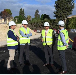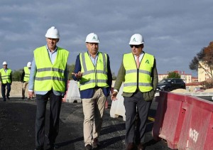 El alcalde de Tomares, José María Soriano, el delegado del Gobierno de la Junta de Andalucía en Sevilla, Ricardo Sánchez, y el delegado territorial de Fomento, Articulación del Territorio y Vivienda de la Junta de Andalucía en Sevilla, Francisco de Paula Juárez, han visitado los trabajos que se desarrollan en Tomares en el marco de las obras de mejora de seguridad vial de la A-8063, concretamente, en el tramo que discurre desde la Rotonda del Zurraque hasta la urbanización Valdovina, uno de los puntos negros para el tránsito peatonal que con esta actuación quedará solucionado. Durante la visita, han estado también presentes responsables de Heliopol, empresa constructora adjudicataria, y Vsing Innova 2016, encargada de la asistencia técnica.