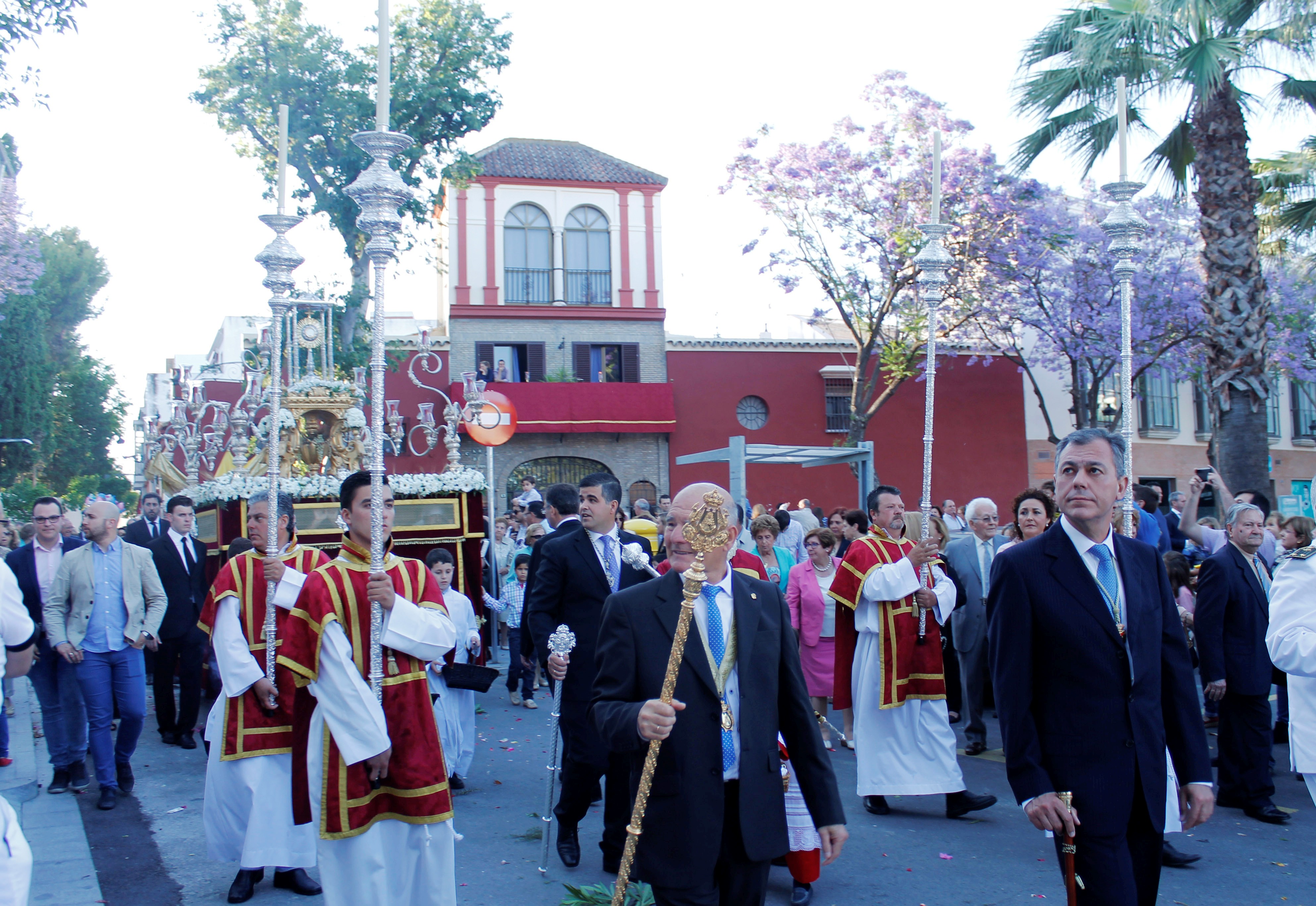 Este año la procesión del Corpus presentaba una importante novedad, por primera vez la Sagrada Forma iba portada en una Custodia cedida por la Parroquia de la Oliva de Dos Hermanas.