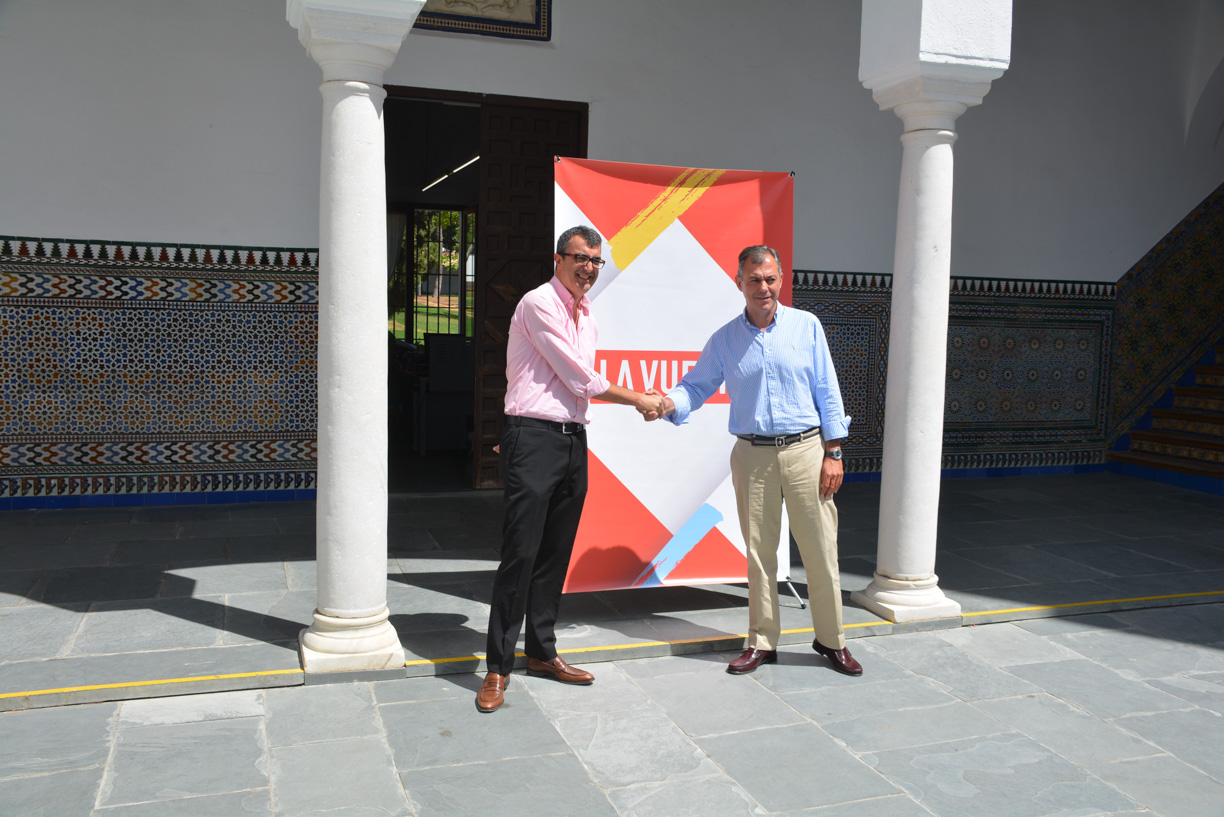 El itinerario en su recorrido por las calles del municipio, así como todos los preparativos que se están realizando para el buen desarrollo del final de etapa, ha sido presentado hoy en el Ayuntamiento de Tomares en una reunión de trabajo por el Director General de La Vuelta, Javier Guillén, y el alcalde de Tomares, José Luis Sanz.