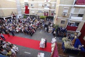 El barrio de Las Almenas vivió el domingo 25 de septiembre una “esplendorosa” mañana con la visita, por primera vez en sus 45 años de historia, de la Virgen de los Dolores en el Rosario de la Aurora. Los vecinos de este tradicional barrio de Tomares se volcaron para recibir a la Virgen, que cuenta con una gran devoción en el municipio.