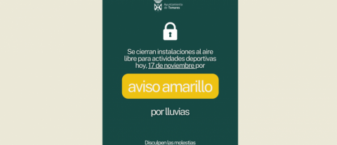 LUNES, 17 DE NOVIEMBRE: AVISO AMARILLO POR LLUVIAS SÓLO HASTA LAS 14:00 HORAS: CIERRE PREVENTIVO DE INSTALACIONES AL AIRE LIBRE PARA ACTIVIDADES DEPORTIVAS