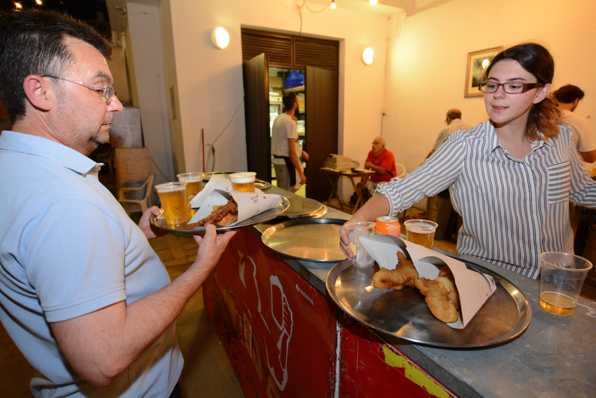 Si hay algo que convierte a Tomares en cita obligada en la agenda gastronómica de la provincia cuando llega el verano, son las famosas y exquisitas pavías caseras de merluza y bacalao hechas por las mujeres de la Hermandad Sacramental servidas bajo el cielo estrellado de la temporada estival.