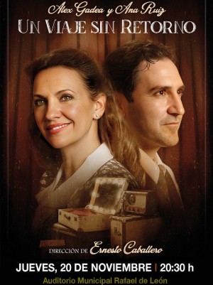 - JUEVES, 20 DE NOVIEMBRE: COMEDIA DRAMÁTICA “UN VIAJE SIN RETORNO”, interpretada por Álex Gadea y Ana Ruiz, bajo la dirección de Ernesto Caballero. Será a las 20:30 horas en el Auditorio Municipal Rafael de León. “Un viaje sin retorno” es la historia de Chelito y Federico, una historia de amor y supervivencia, donde el éxito oculta pérdidas, renuncias y sueños rotos en la España de los años cincuenta. Un espectáculo con canciones de aquella época, cantadas en directo a través del personaje de “Chelito Gallardo”, artista de aquel momento. Una alegoría sobre la fantasía del éxito y sus consecuencias, que parte de la premisa de que el éxito no siempre es un buen compañero de viaje. Cuidado con lo que sueñas porque los sueños se pueden cumplir…Entradas a 15 euros para empadronados y 18 euros para el resto del público, en: https://www.giglon.com/todos?idEvent=un-viaje-sin-retorno---alex-gadea