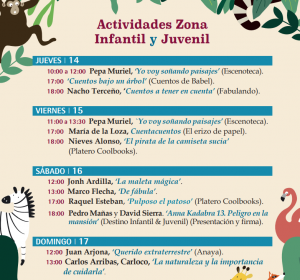 Una extensa y variada programación, que se desarrolla en el Auditorio Municipal Rafael de León, donde los colegios contarán con actividades y, principalmente, en la Caseta Infantil, instalada en la Avda. Blas Infante, en la que habrá cuentacuentos, talleres y presentaciones de libros. Un espacio que estará junto a las librerías y editoriales especializadas en los más pequeños.