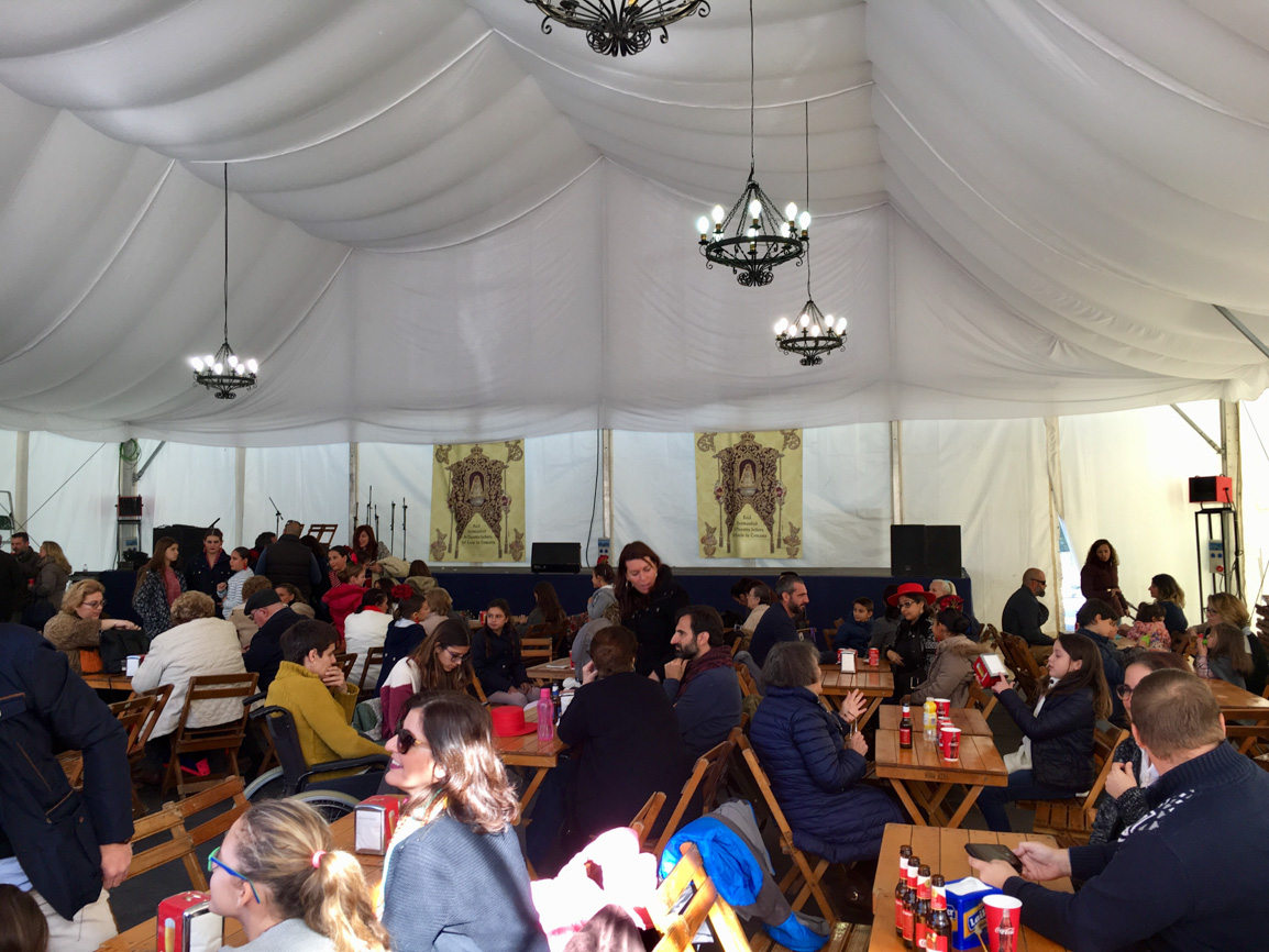 La novena edición de la Convivencia del Colesterol, organizada por la Hermandad del Rocío de Tomares, ha sido todo un éxito de participación. Cientos de vecinos llenaron este pasado fin de semana, sábado 2 y domingo 3 de diciembre, la carpa municipal instalada por el Ayuntamiento de Tomares para disfrutar de las dos jornadas festivas propuestas por la Hermandad del Rocío.