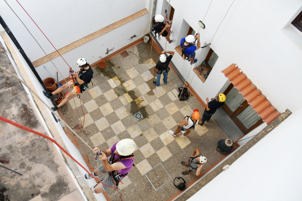 Los nueve alumnos, que ya cuentan con experiencia en fontanería, pintura, electricidad, albañilería u otros oficios relacionados, están especializándose en la técnica de trabajos verticales y su aplicación en el mantenimiento de edificaciones, montaje de estructuras, etc.