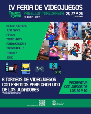 Un gran Salón, en el que los jóvenes podrán jugar a los videojuegos más punteros y de moda como el King of Fighters, Just Dance, Fifa 23, Mario Karts, Forza Horizon 5, Dragon Ball Z, Tekken 7 o el Sonic, de una zona recreativa con clásicos juegos de los años 80 y 90, y en el que podrán participar en seis Torneos con premios para cada uno de los jugadores, (juegos de Hboh One o PS4). Entrada libre hasta completar aforo. Más información en www.tomaresjoven.com. Hasta el 28 de diciembre. Lugar: Pabellón Cubierto Mascareta (C/ La Solana, s/n). Hora: de 16 a 21 horas.