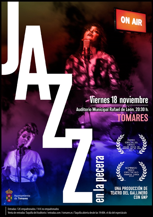 El espectáculo, que ha sido Nominado Mejor Espectáculo en los Premios Lorca 2020 y cuenta con el Premio Especial del Jurado Palma Feria Teatro en el sur 2018, contará con una banda de Jazz en directo que hará un recorrido por la historia del jazz. Será en el Auditorio Municipal Rafael de León, a las 20:30 horas. Entradas a la venta