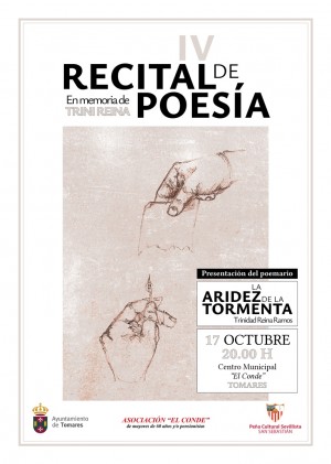 TOMARES ACOGE ESTE VIERNES, 17 DE OCTUBRE, EL IV RECITAL DE POESÍA EN MEMORIA DE TRINI REINA Y LA PRESENTACIÓN DE SU TERCER POEMARIO “LA ARIDEZ DE LA TORMENTA”