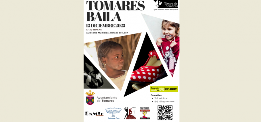 Tomares se prepara para celebrar una de sus citas solidarias más importantes del calendario: La VI Gala Solidaria “Tomares Baila por la Infancia”, organizada por la Fundación Tierra de hombres España, en colaboración con el Ayuntamiento de Tomares, con el objetivo de recaudar fondos para los proyectos de protección y defensa de los derechos de la infancia que Tierra de hombres desarrolla, enfocándose en la ayuda directa a la infancia desamparada. Se celebrará el próximo sábado 13 de diciembre, a partir de las 17:30 horas, en el Auditorio Municipal Rafael de León.