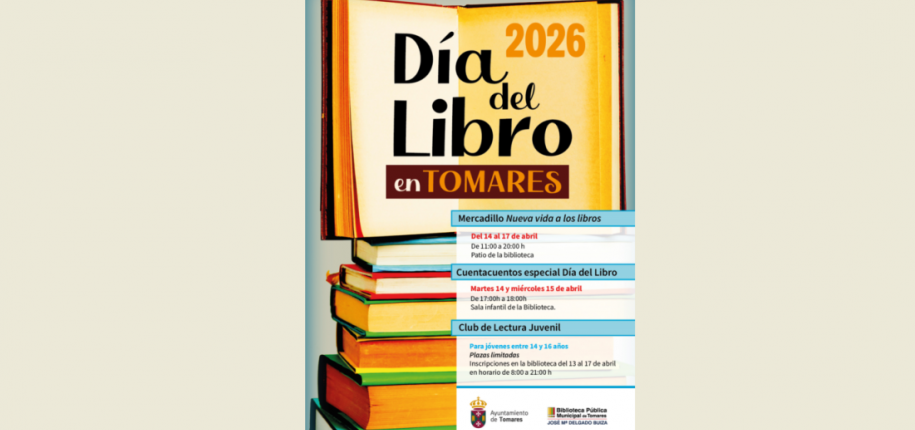 TOMARES CELEBRA EL DÍA DEL LIBRO CON ACTIVIDADES EN LA BIBLIOTECA DESDE ESTE MARTES 14 AL VIERNES 17 DE ABRIL