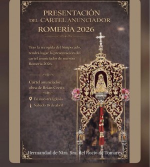 También se presentará el Cartel Anunciador de la Romería del Rocío de Tomares 2026, obra de Brian Crews, tras la recogida del Simpecado del Rocío en la Parroquia de Ntra. Sra. de Belén.