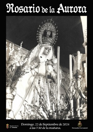 Tomares madrugará este domingo, 22 de septiembre, para celebrar su tradicional Rosario de la Aurora de Ntra. Sra. la Virgen de los Dolores que saldrá a las 7:30 horas de la mañana de su Parroquia Ntra. Sra. de Belén, para recorrer las calles del municipio y cumplir, como se viene haciendo desde hace once años, con una tradición centenaria en España y que en Tomares se había perdido, siendo recuperada en 2014.