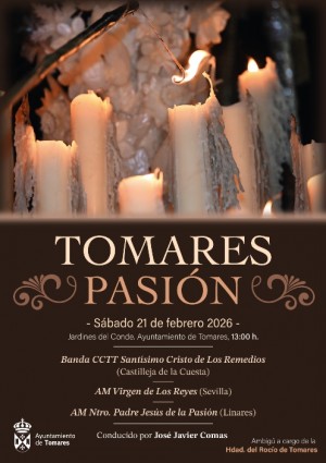 Tomares se convierte este sábado, 21 de febrero, en cita obligada para los amantes de la Semana Santa, con su tradicional Certamen de Bandas “Tomares Pasión” que llenará de marchas procesionales y sonidos cofrades el municipio a partir de las 12:30 horas. Un clásico ya de Tomares que será presentado por el reconocido periodista, fotógrafo y comunicador en el ámbito cofrade de la capital hispalense, José Javier Comas Rodríguez.