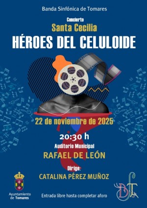 El Ayuntamiento de Tomares celebrará este sábado, 22 de noviembre, el Día de Santa Cecilia, Patrona de la Música y Día Internacional de los Músicos (onomástica que se celebra cada 22 de noviembre), con el tradicional Concierto de Santa Cecilia “Héroes del Celuloide”, que ofrecerá la prestigiosa Banda Sinfónica de Tomares (BST), dirigida por Catalina Pérez Muñoz, que deleitará a los tomareños con uno de los conciertos más especiales del año. Será a las 20:30 horas, en el Auditorio Municipal Rafael de León. Entrada libre hasta completar aforo.