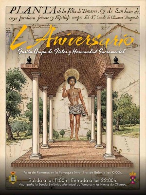Una Romería que este año adquiere un carácter especialmente conmemorativo, ya que en 2026 se cumplen 50 años de la fusión de la Asociación de Fieles de San Sebastián con la Hermandad Sacramental, la cual tuvo lugar en 1976, fecha en la que la cofradía asumió la organización de los actos y cultos en honor al Patrón, manteniendo viva una devoción profundamente arraigada en Tomares.