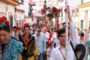 Tras la misma, a las 11:00 horas, ante la emocionada mirada de multitud de vecinos y devotos, se llevará a cabo el traslado y entronización del Santo Mártir en la carreta, que lo esperará en la puerta del templo, para iniciar la ida hacia su templete en el Parque Olivar del Zaudín, recorrido que realizará acompañado por el alcalde de Tomares, José María Soriano, el Hermano Mayor de la Hermandad Sacramental, José Joaquín Manzano Vega, la delegada especial de Fiestas Mayores y Tradiciones del Ayuntamiento de Tomares, María Toledo, y cientos de vecinos andando o montados en sus carriolas.