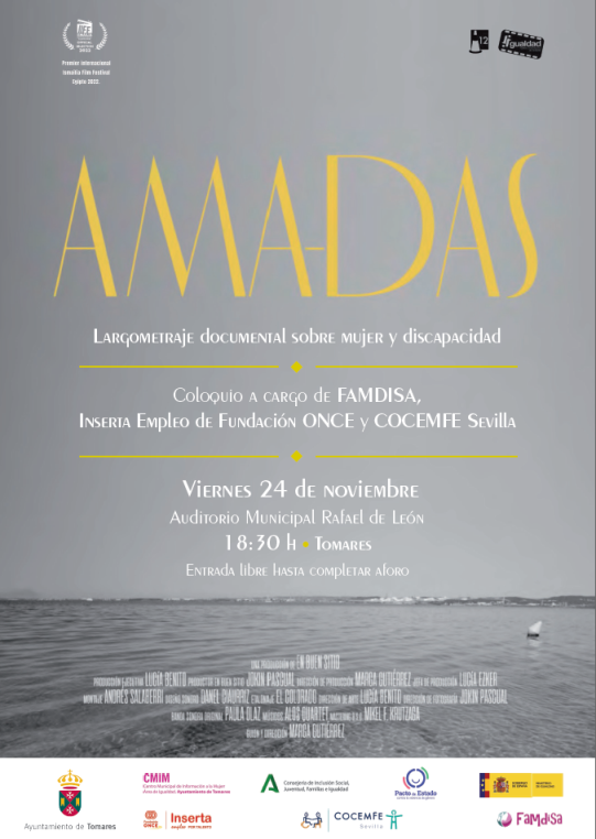 Por la tarde, se ofrecerá el largometraje documental “Ama-das”, producida por En Buen Sitio y, escrita y dirigida por Marga Gutiérrez, en el Auditorio Municipal Rafael de León, a las 18:30 horas. Largometraje galardonado con el Premio Cermi.es 2023 en la categoría de acción cultural y/o deportivas inclusivas y el Premio Internacional Ismailia Film Festival Egipto 2022. Una mirada cinematográfica observacional sobre el tema de la mujer, la discapacidad y la violencia, donde los personajes y sus vivencias ponen el color a una apuesta en blanco y negro, nada que nos distraiga del objetivo: escuchar y que se vuelvan visibles.