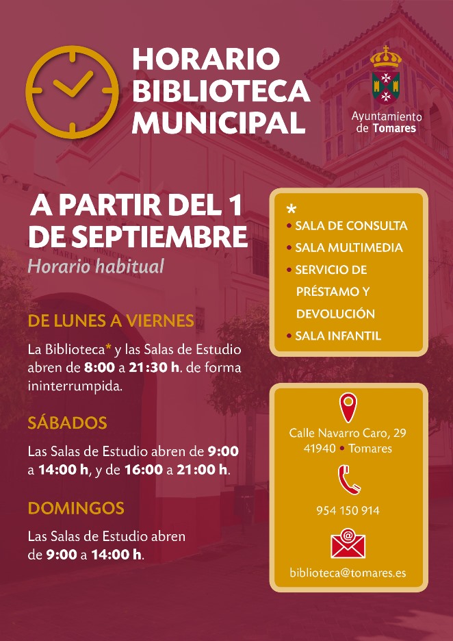 El Ayuntamiento de Tomares se sumará a la iniciativa regalando libros a quienes visiten la Biblioteca Municipal de Tomares “José María Delgado Buiza”, situada en la calle Navarro Caro, nº 29. Teléfono: 954 15 09 14.