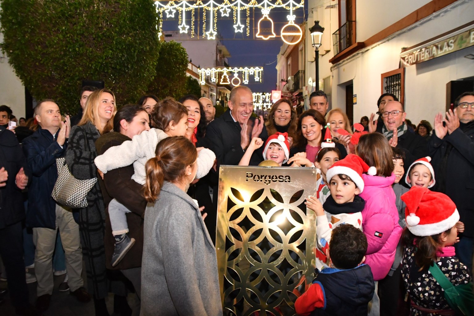 El alcalde de Tomares, José María Soriano, acompañado por su Equipo de Gobierno, los niños y niñas del municipio, y cientos de vecinos, ha inaugurado este viernes, 5 de diciembre, en las céntricas Cuatro Esquinas, el encendido del alumbrado de la Navidad en Tomares, dando inicio oficialmente a una gran Programación que llega cargada con más de 100 eventos para compartir en familia y con los amigos. Un momento mágico que ha sido ambientado con los villancicos del tradicional Coro de Campanilleros.
