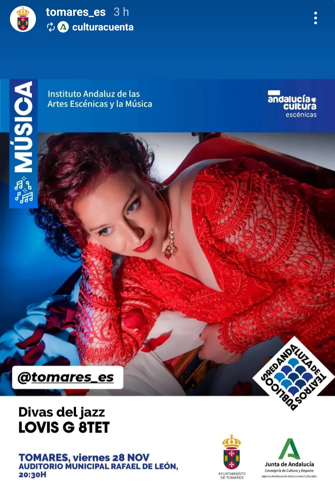 El Ayuntamiento de Tomares ofrecerá este viernes, 28 de noviembre, el espectáculo "Divas del Jazz", dentro de su ciclo de Teatro y Música de este "Otoño Cultural" 2025, que a lo largo de octubre y noviembre, ha traído al Auditorio Municipal Rafael de León, nueve de las mejores producciones de teatro y música de gira por España. Será a las 20:30 horas. ¡No te quedes sin tu entrada!