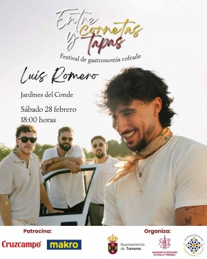 El sábado, 28 de febrero, Día de Andalucía, el grupo tomareño Luis Romero, ofrecerá un gran concierto a las 18:00 horas, amenizando con su música Los Jardines del Conde.