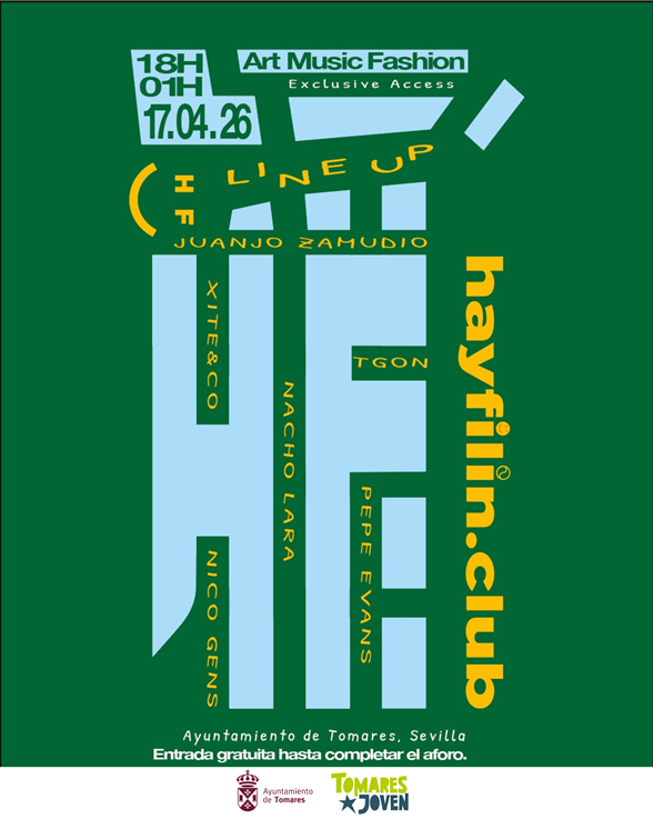 Tomares se convertirá en la capital del house en Andalucía, el próximo viernes, 17 de abril, con una nueva edición del Festival “HayFilin”Art Music Fashion, destacado evento internacional de música house que reunirá a reconocidos artistas en torno a la cultura electrónica: DJ Juanjo Zamudio, Pepe Evans, Xite & Co, Nacho Lara, el artista y diseñador Nico Gens y Tgon, que llenarán de la mejor música Funky House el Patio de las Buganvillas del Ayuntamiento de Tomares (C/ de la Fuente, 10), desde las 18:00 a las 1:00 horas.