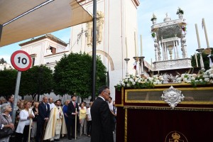 La procesión con la Sagrada Forma partió de la Parroquia de Nuestra Señora de Belén a las 20:30 horas, acompañada de las Agrupaciones Musicales Nuestro padre Jesús de la Redención y María Santísima del Rocío de Sevilla. Presidiendo el cortejo iba el párroco Fernando Emilio Borrego Ojeda, el alcalde de Tomares, José María Soriano, la concejala de Cultura y Festejos del Ayuntamiento, Mª Carmen Ortiz, el Hermano Mayor de la Hdad. Sacramental, Joaquín Manzano Vega, y la Hermana Mayor de la Hdad. del Rocío, Paqui de la Torre de los Reyes. Un bonito día en el que los vecinos engalanaron con altares sus puertas y balcones para recibir al Corpus Christi.