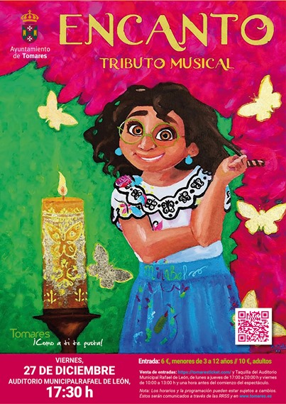 La música ocupará, un año más, un espacio fundamental, con más de una decena de Conciertos en el Auditorio Municipal Rafael de León como el de Manuel Lombo (sáb. 28 dic), la Banda Sinfónica de Tomares (sáb. 21), la Coral Polifónica (dom. 15) o el Coro de Campanilleros (sáb. 21), las galas benéficas de Tierra de Hombres “Tomares baila” (dom, 15 dic) o el Festival de Magia de Corazones con Bata (domingo, 22 dic), y en el Patio de las Buganvillas del Ayuntamiento con el ciclo de “Conciertos en la Hacienda” que deleitará a los tomareños con las Zambombas Flamencas de la Escuela Albéniz (19 dic.) o de Alicia Gil (dom. 22) y las bandas Andabluses (sáb.14), Son de Cuba (sáb. 21), The Fever Band Rock Americano (sáb.28) o Pájaro con su banda al completo (sáb. 4 de enero).