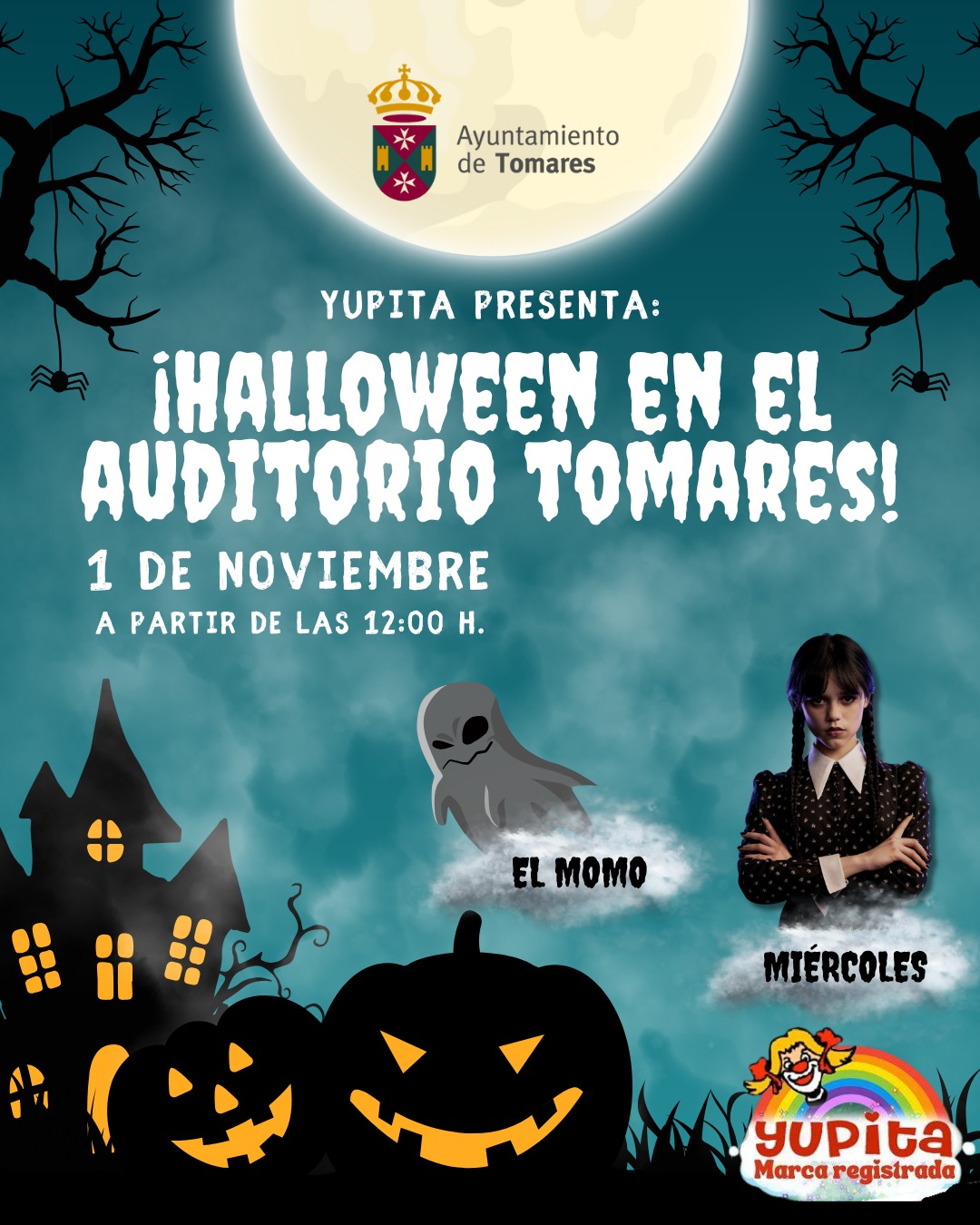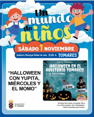 Los más pequeños de Tomares también podrán disfrutar de Halloween este sábado, 1 de noviembre, con el divertido espectáculo infantil de “Yupita, Miércoles y El Momo”, que se celebrará en el Auditorio Municipal Rafael de León, a las 12:00 horas, dentro de la actividad “Un Mundo de Niños”.