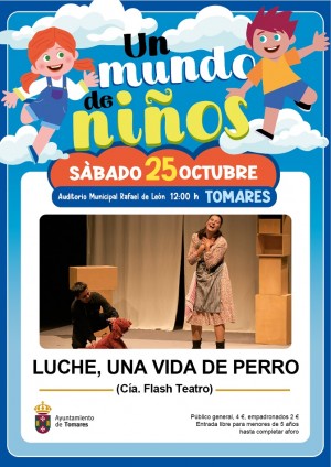 El Ayuntamiento de Tomares ofrecerá este sábado, 25 de octubre, la obra de teatro infantil, “Luche, una vida de perro”, de la cía. Flash Teatro, que además de hacer reir a toda la familia, enseñará a los pequeños el amor por los animales y a cuidar bien de sus mascotas.