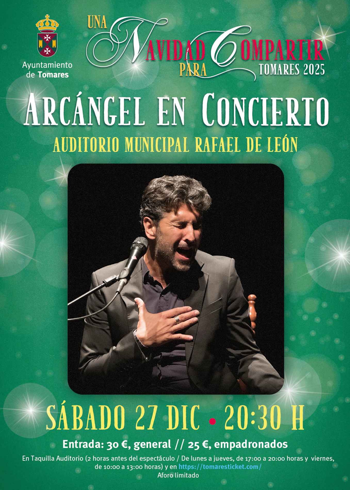 - Sábado, 27 de diciembre: Concierto de “Arcángel”, a las 20:30 horas. Entradas: 25 euros empadronados; y 30 euros, el resto, aquí: https://tomaresticket.com/arcangel-en-concierto/